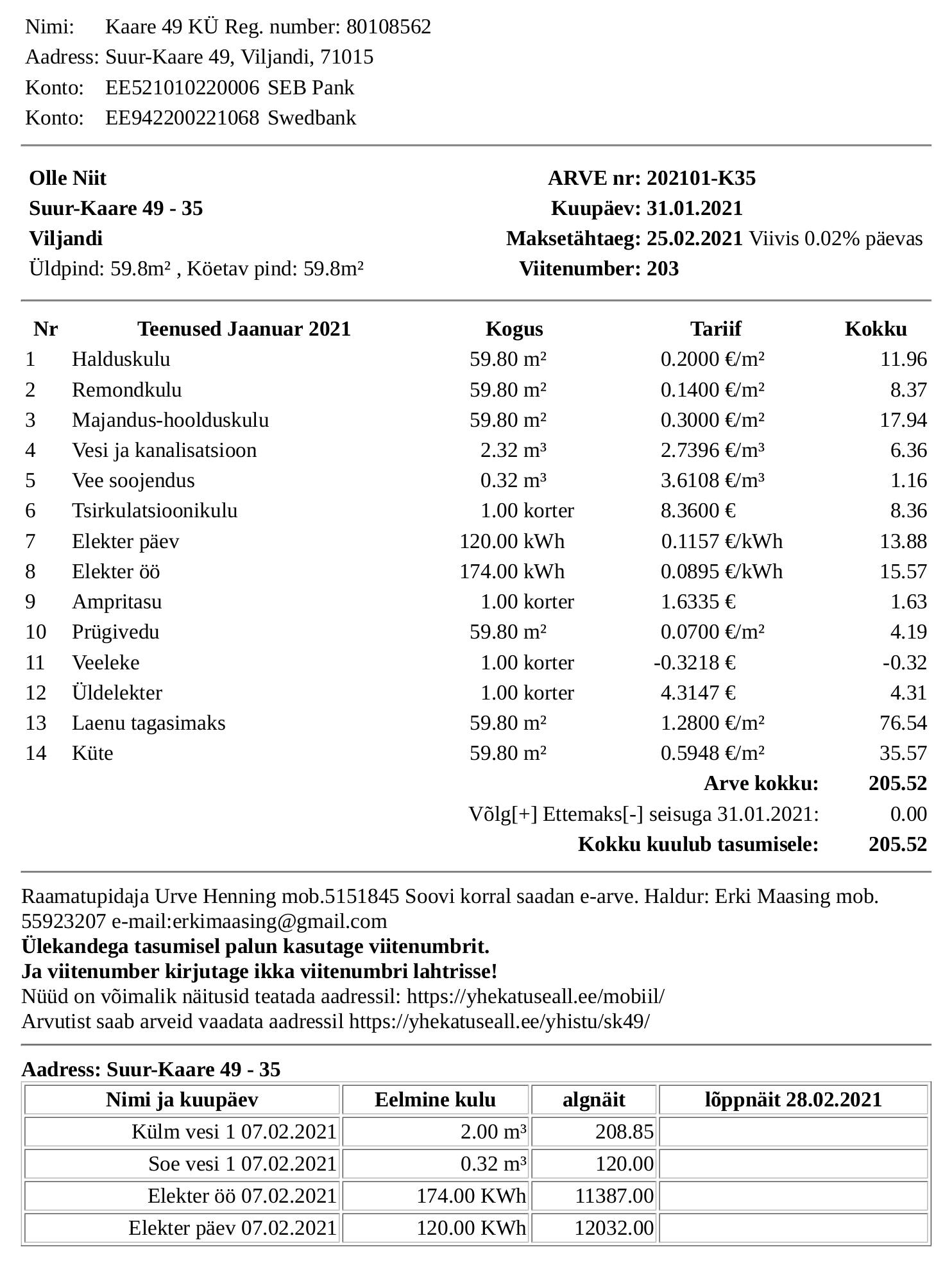 Peale Kinnita nupule vajutamist on kõigil korteriomanikel arved olemas, mida nad arvutist vaadata saavad. Arve sellisena, nagu raamatupidaja ta välja trükib või meiliga saadab. Arveid saab ka panka otsekorralduste e-arveteks importida, kui pangaga vastav leping sõlmida.