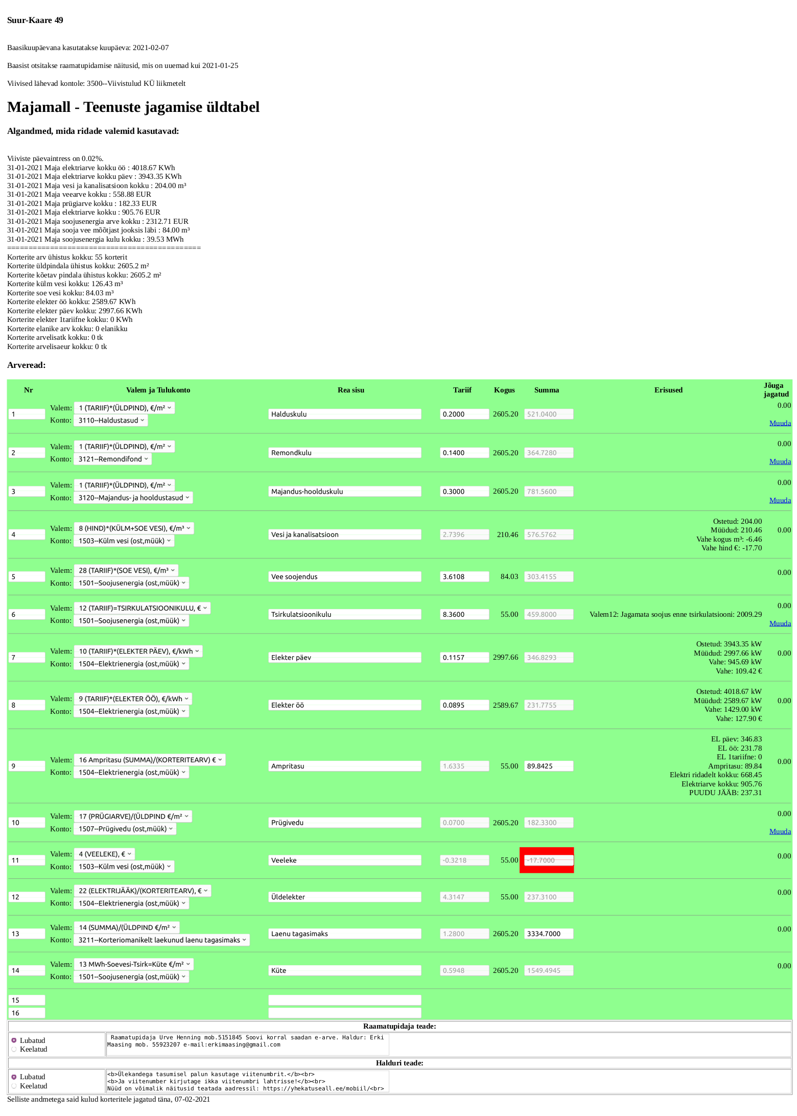 Selline on kulude jagamine: raamatupidaja vaatab üle, kas kõik õige tundub ja vajutab Kinnita nuppu. Korteriomanikud saavad tagantjärele samuti vaadata, kuidas ühelgi kuul kulusid jagati. Nii on kõigile korteriomanikele selge, miks ühised kulud on sellised, nagu nad on: