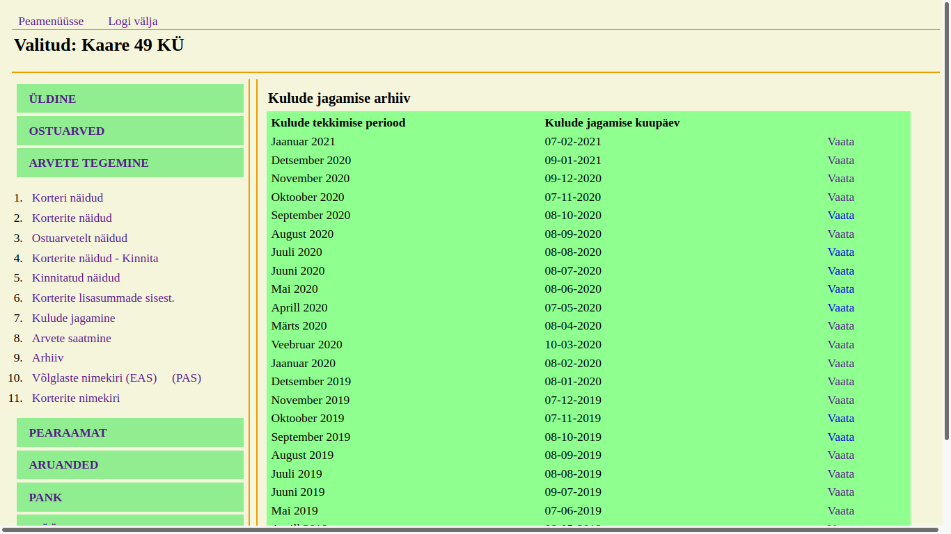 Nii raamatupidaja kui korteriomanikud näevad alati, kuidas arveid jagatud on, vajutades Vaata näed järgmisel pildil olevat infot.
